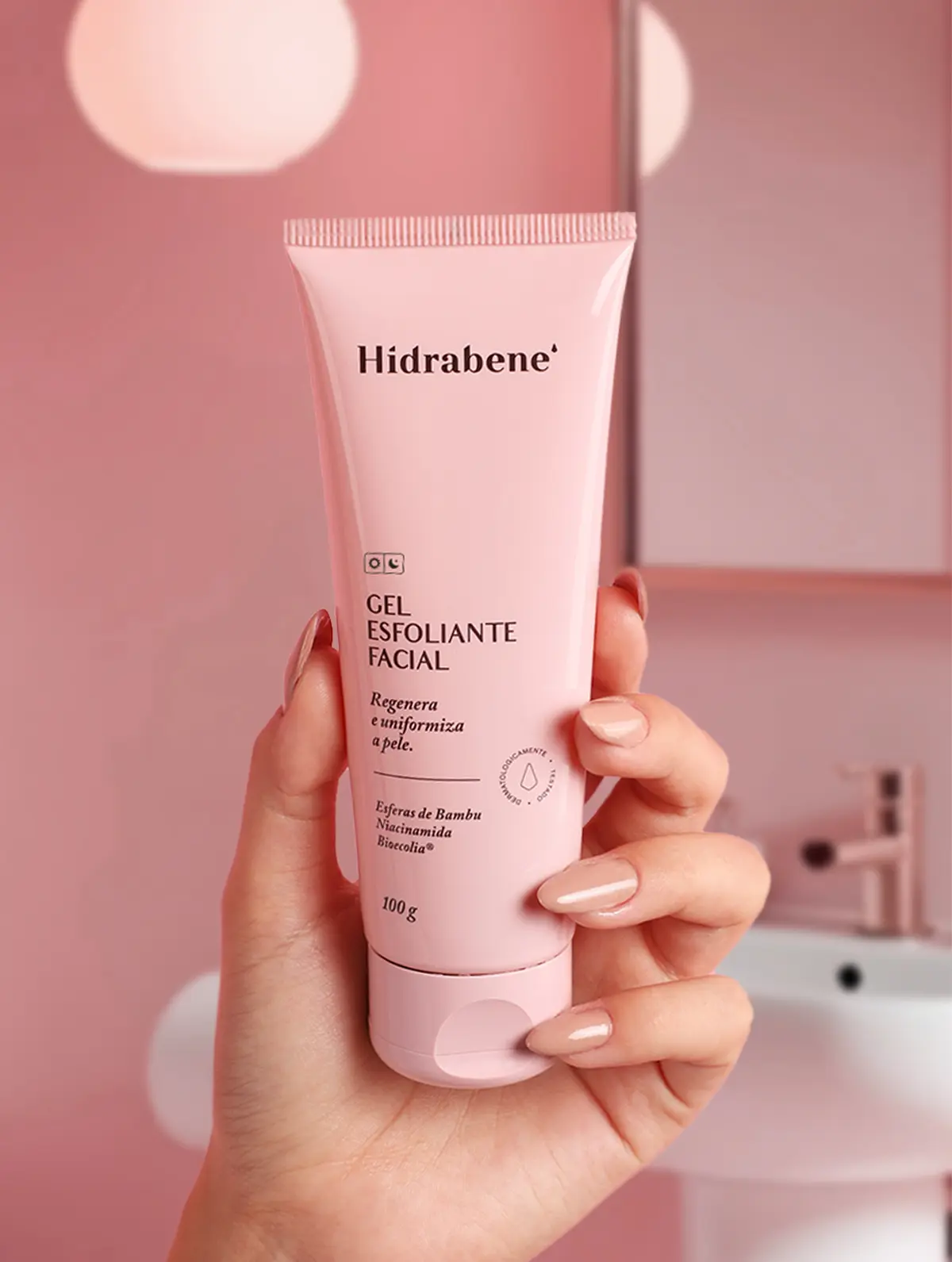 Indicado para todos os tipos de pele, promove uma esfoliação física suave removendo o acúmulo de sujeiras e células mortas. Contém ativos que suavizam, promovem hidratação e estimulam a proteção natural da microbiota da pele. Produto hipoalergênico, formulado de maneira a minimizar possível surgimento de alergia.